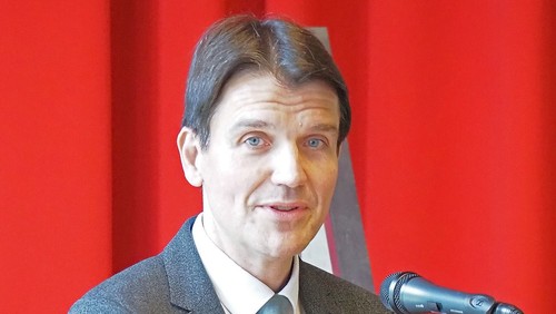 Nach Grußworten vom stellvertretenden Bürgermeister Gladbecks, Norbert Dyhringer, und der Recklinghäuser Superintendentin Saskia Karpenstein wurde Kreissynode mit dem Bericht des Superintendenten fortgesetzt. Riesenberg griff das Bild vom Emscherumbau in seiner Rede auf und erzählte von der Emschergroppe, einem kleinen Fisch, der in einem Seitenarm der Emscher in Kirchhellen über Jahrzehnte überlebte und mittlerweile im ganzen Emscher-System wieder heimisch wird. Analog dazu mache er sich keine Sorgen um das Evangelium, auch wenn die kirchliche Organisation sich stark verändern werde und müsse. Riesenberg berichtete von gelungenen Beispielen aus dem Kirchenkreis.