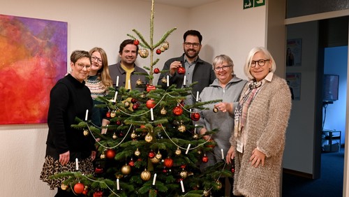 Nach dem das gute Stück dann endlich beschnitten und eingestielt war, begann mit leichter Verspätung und Mariah Carey aus der Konserve das große Schmücken. Frei nach der guten alten Riesenberg-Tradition: „Alle Kugeln müssen in den Baum!“ Und auch wenn der Baum anfangs ein wenig zu hoch war, waren sich am Ende alle einig: „Schön ist er doch!“