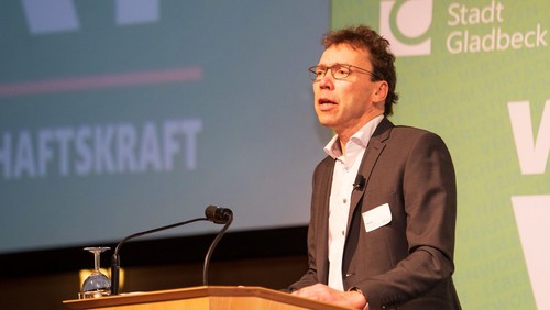In seinem Vortrag sagte der Theologe: „Sie wissen am besten, was Sie momentan beschäftigt: Ob sie ihr Leben gerade gut allein wuppen oder froh sind über ein Angebot in der Kita, im Jugendzentrum. Oder ob die Eltern gerade alt werden und immer öfter nicht wissen, was gestern war, was heute ist – und wer du bist?“ Um die Bedeutung der Sozialwirtschaft zu unterstreichen, lieferte Hesse Zahlen: über 18.000 Menschen in Gladbeck nehmen die Unterstützung der Wohlfahrtsverbände wahr. 3400 Mitarbeitende und 1800 Ehrenamtliche arbeiten dabei mit – vom Hausnotruf des Roten Kreuzes über die Werkstatt der Caritas, die Beratungsstellen des Paritätischen und evangelischen Kitas bis zum Pflegeheim der Diakonie.